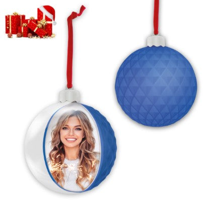 Zep Photo Christmas Diamond Blu, palla di natale con foto, in plastica metà di colore blu con decoro a rilievo e metà trasparente, personalizzabile con foto, da appendere, idea regalo originale, addobbo o decorazione natalizia, regalo personalizzato.