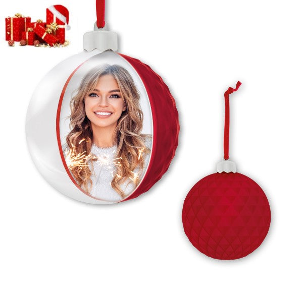 Zep Photo Christmas Diamond Red, palla di natale con foto, in plastica metà di colore fucsia con decoro a rilievo e metà trasparente, personalizzabile con foto, da appendere, idea regalo originale, addobbo o decorazione natalizia, regalo personalizzato.