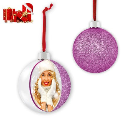 Zep Photo Snow Flake Violet, palla di natale con foto, in plastica metà di colore viola con decoro glitter e metà trasparente, nuovo sistema glitter stop per evitare che i brillantini si disperdano, personalizzabile con foto, da appendere, idea regalo originale, addobbo o decorazione natalizia, regalo personalizzato.