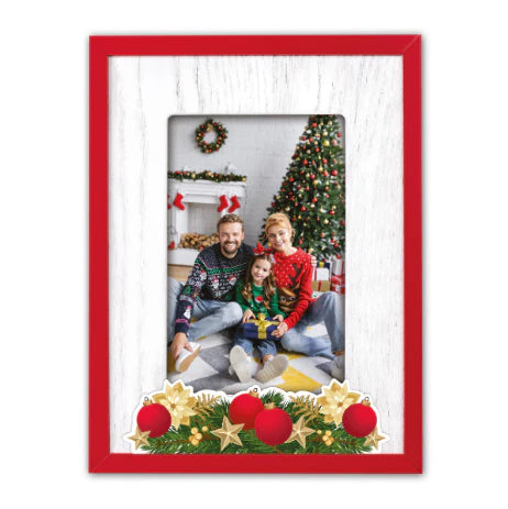 Zep Cornice Braies Vertical in legno, colore bianco, rosso e legno naturale, con decori natalizi in 3D, da tavolo e da parete, disponibile in vari formati,idea regalo originale, decorazione natalizia, regalo personalizzato.