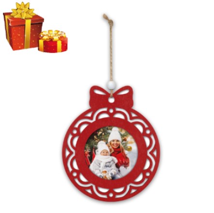 Zep Forsol A, decoro natalizio traforato in legno colore rosso, a forma di pallina di natale, con magnete, personalizzabile con una foto, da appendere, idea regalo originale.