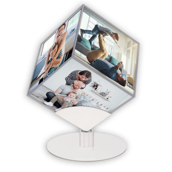 Zep Steven, cubo portafoto rotante in acrilico trasparente, per 6 foto, con base in metallo inclusa, ideale per esporre le tue foto preferite, adatta per casa e ufficio idea regalo originale.